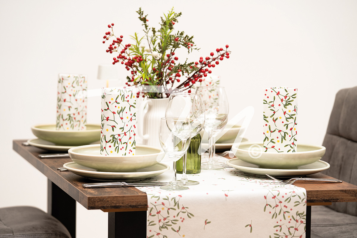 Możliwość wykorzystania produktu jako bieżnik rozwinięty przez kilka stołów, jak również jako obrus "tete a tete" dla dwóch osób przy jednym stole.