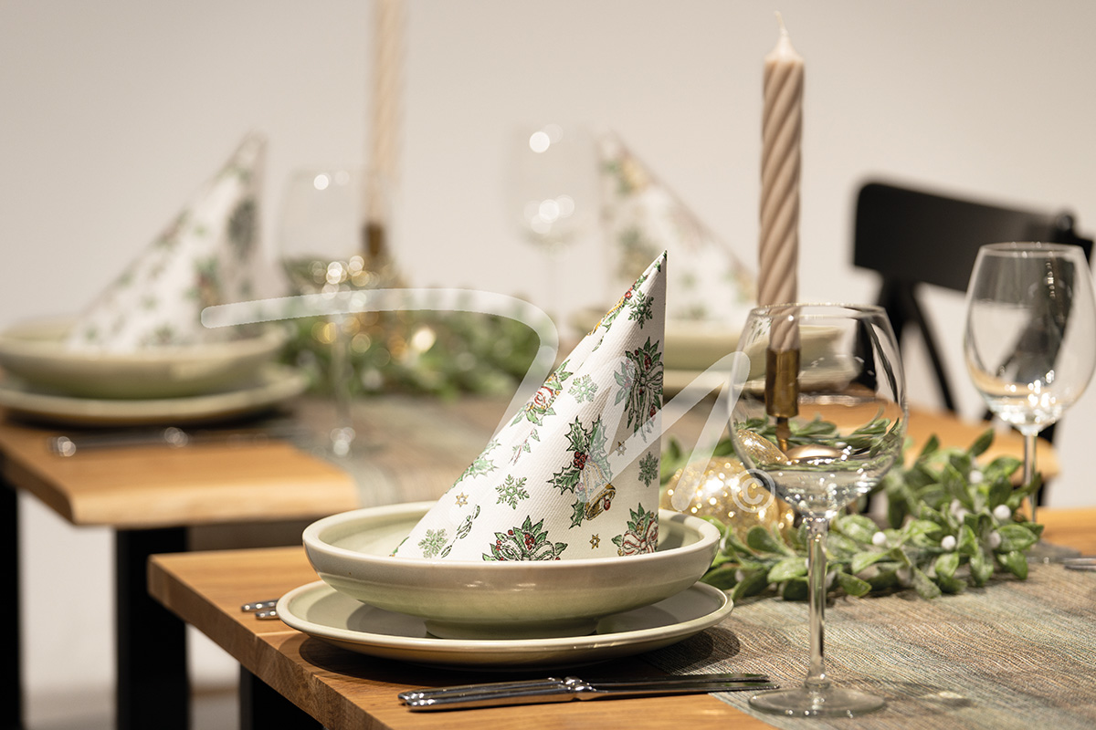 Bieżnik wykonany z materiału airlaid imitującego tkaninę zarówno optycznie jak i w dotyku.